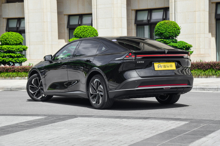 从侧面部分来看,这款车型的侧面部分采用的也是较为简约化的设计理念,首先在视觉效果方面来看,呈现出的是较为修长的感觉,而且在侧面部分运用到了悬浮式的设计属性,搭配贯穿式的腰线设计,同时结合俯冲式的设计风格能够满足年轻化的审美需求,同时在细节方面,如它19英寸运动轮毂,呈现出机械式的美感,搭配,Y型造型灵感来自深蓝品牌图形,更衍生出独特的科技感与运动感。同时在细节方面,如无框车门简约大气无遮挡,成就科技美感;同时配备有电动隐藏式门把手,不仅塑造了车身整体流线感,同时也有效降低风阻,门把手智能电动设计,一弹一收之间,是入舱的仪式感,在诸多方面能够感受到这款车型在细节方面的设计优势;而车尾部分延续了家族化的设计理念,采用的是悬浮跃光车尾设计,轻盈跃动感悬浮跃光设计,精妙设计的尾翼、尾灯及车身线条在车尾和谐交汇,使得整车看起来更有个性、富有动感,从视觉方面来看,能够为车友们带来更加科技且时尚的现代化美学设计属性。